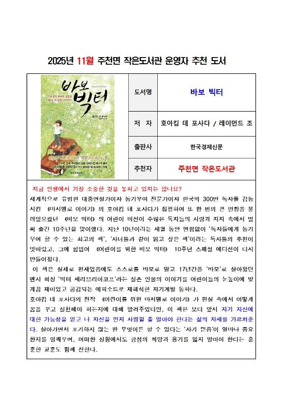 25년 11월 주천면작은도서관 운영자 추천 도서