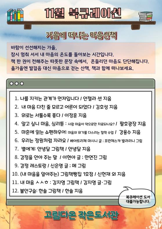 고림다온 작은도서관 11월 북큐레이션 ( 가울에 떠나는 마음산책)