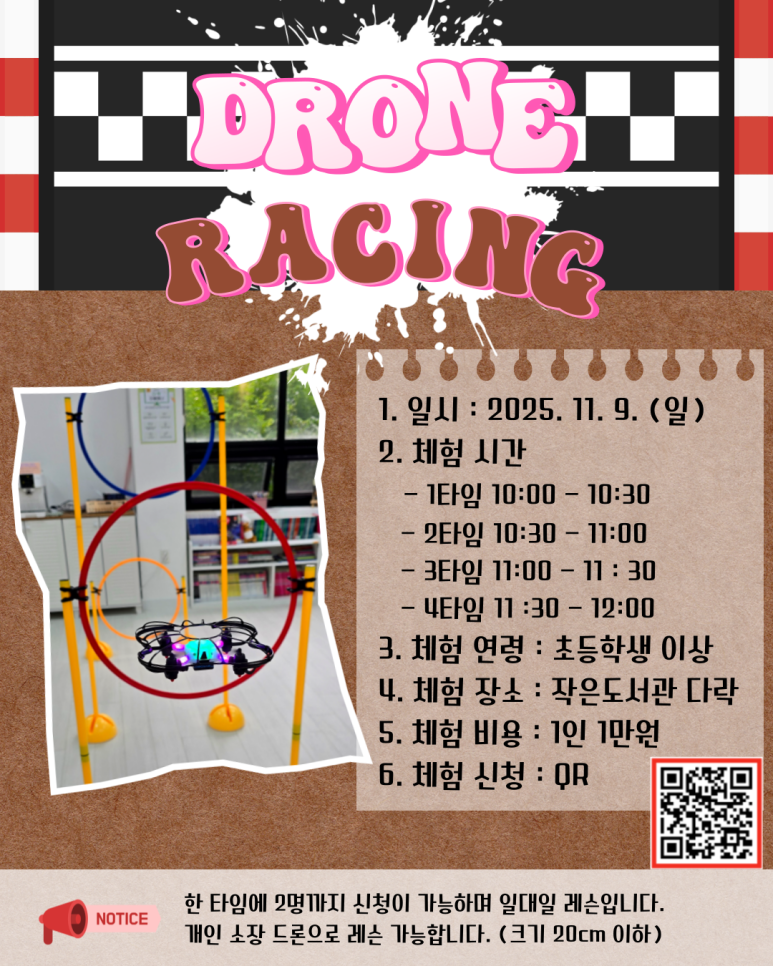 작은도서관 다락에서 열리는 드론 레이싱 체험 프로그램에 많은 관심과 참여 부탁드립니다.