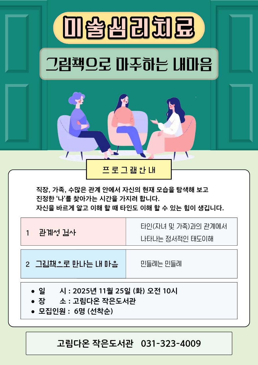 3786 경기도 용인시 처인구 진덕로 7 (고림동) 고림다온작은도서관 고림다온 작은도서관 미술심리치료