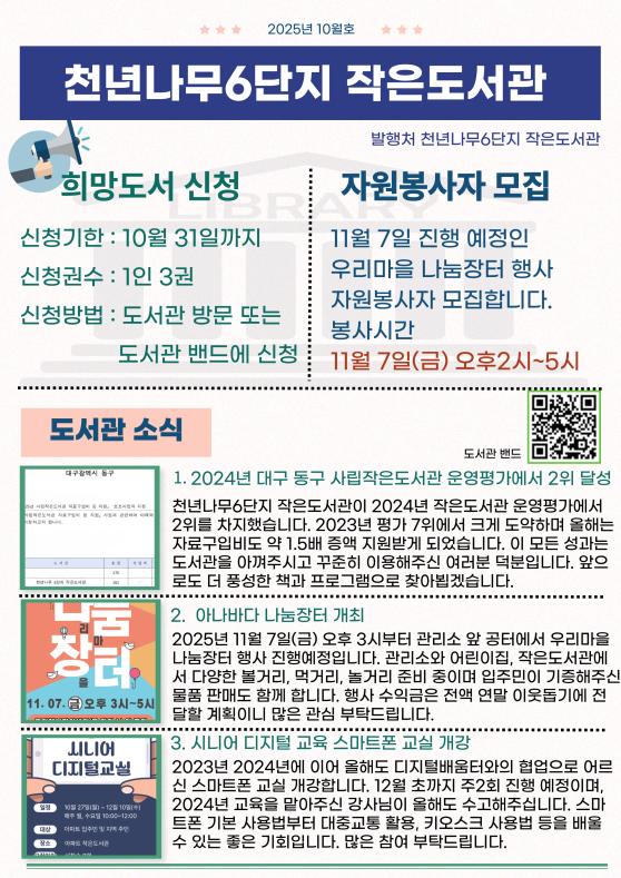 천년나무 6단지 작은도서관 / 대구광역시 동구 과학로 23 (각산동, 대구신서혁신엘에이치천년나무6단지)