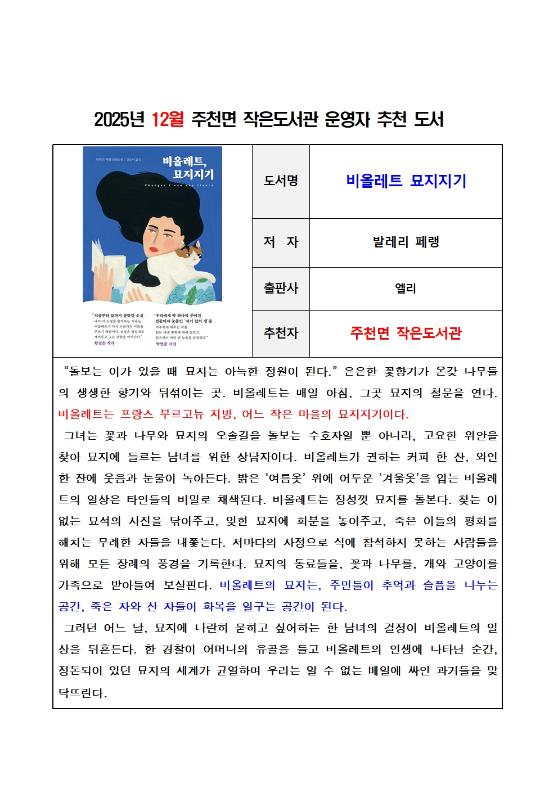 25년 12월 주천면작은도서관 운영자 추천 도서